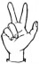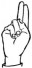 На ћирилици написано РУМЕНА ВЕЉИЋ састоји се из 11 слова [?]. Исписано ћириличном једноручном азбуком за глувонеме:
